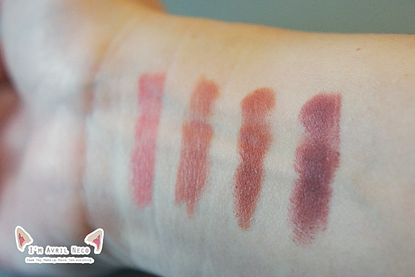 試色顏色就看得出差異,四個顏色都算是裸色系