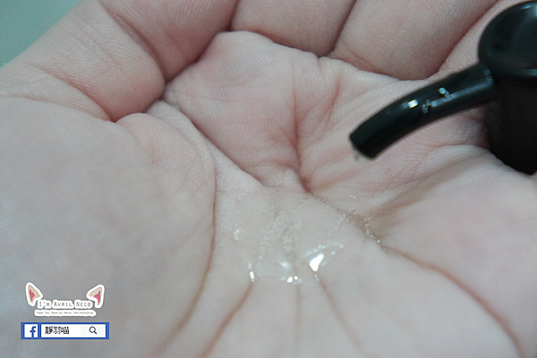 在瓶子裡看起來有淡淡的淺褐色,但按壓出來乍看真的會覺得是透明的凝膠質地,