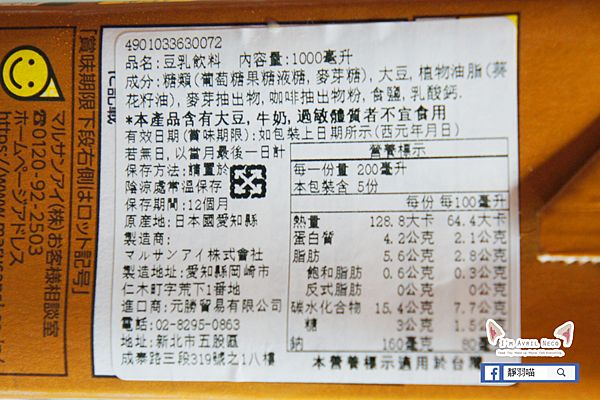 雖然說,這個口味是麥芽風味的豆乳,結果我一看到成分內有 "咖啡抽出物" 之後,突然就覺得不妙 ![]()