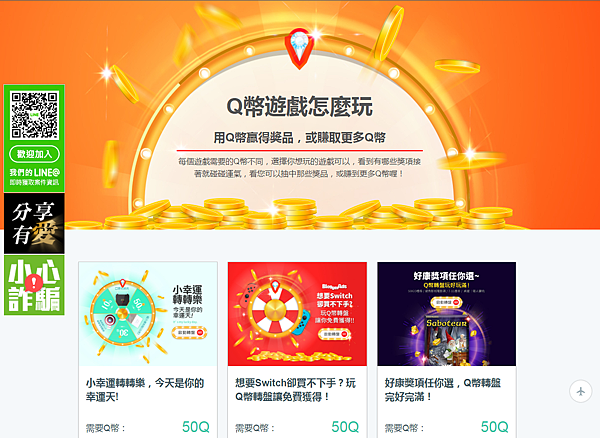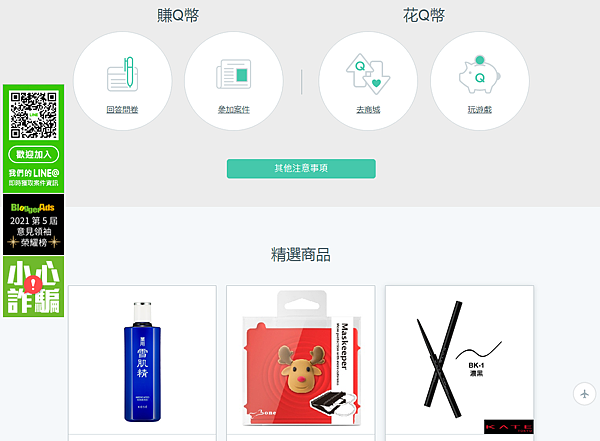 參加活動有時會獲得Q幣,這些站內的Q幣,可以前往Q幣商城兌換獨家商品