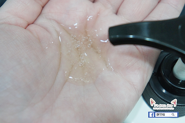 它按壓出來是透明的純露洗髮精,淡淡的香味我很喜歡,我習慣按壓2下的量,有外出就會連續洗2次頭髮