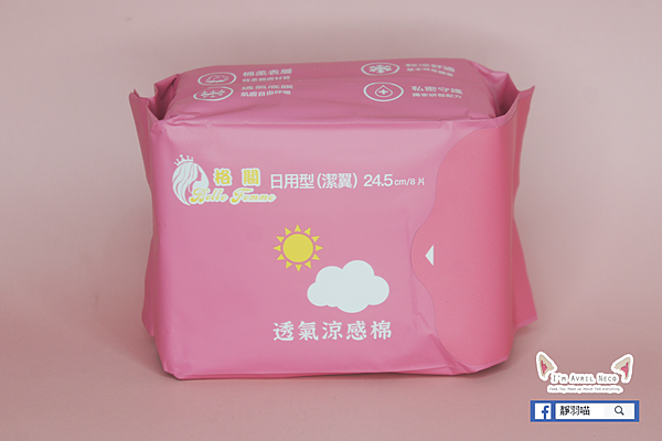 格閣的日用型涼感衛生棉包裝是粉紅色的,上面還有代表白天的太陽圖示,還沒打開就能聞到精油的香味