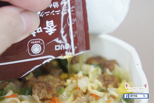 但這時候還不能直接吃,還要加入放在蓋子上的那包香味油才算完整,打開油包,我只聞到淡淡的生薑味